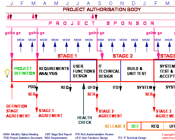 At the end of Stage 2 the pattern is repeated. What is the implication of the fact there are no double arrows up to the 'Project Authorisation Body' at the end of Stage 2? You still think it's going to cost around £1.3M. The sponsor does not need to go back to the Board with his begging bowl.